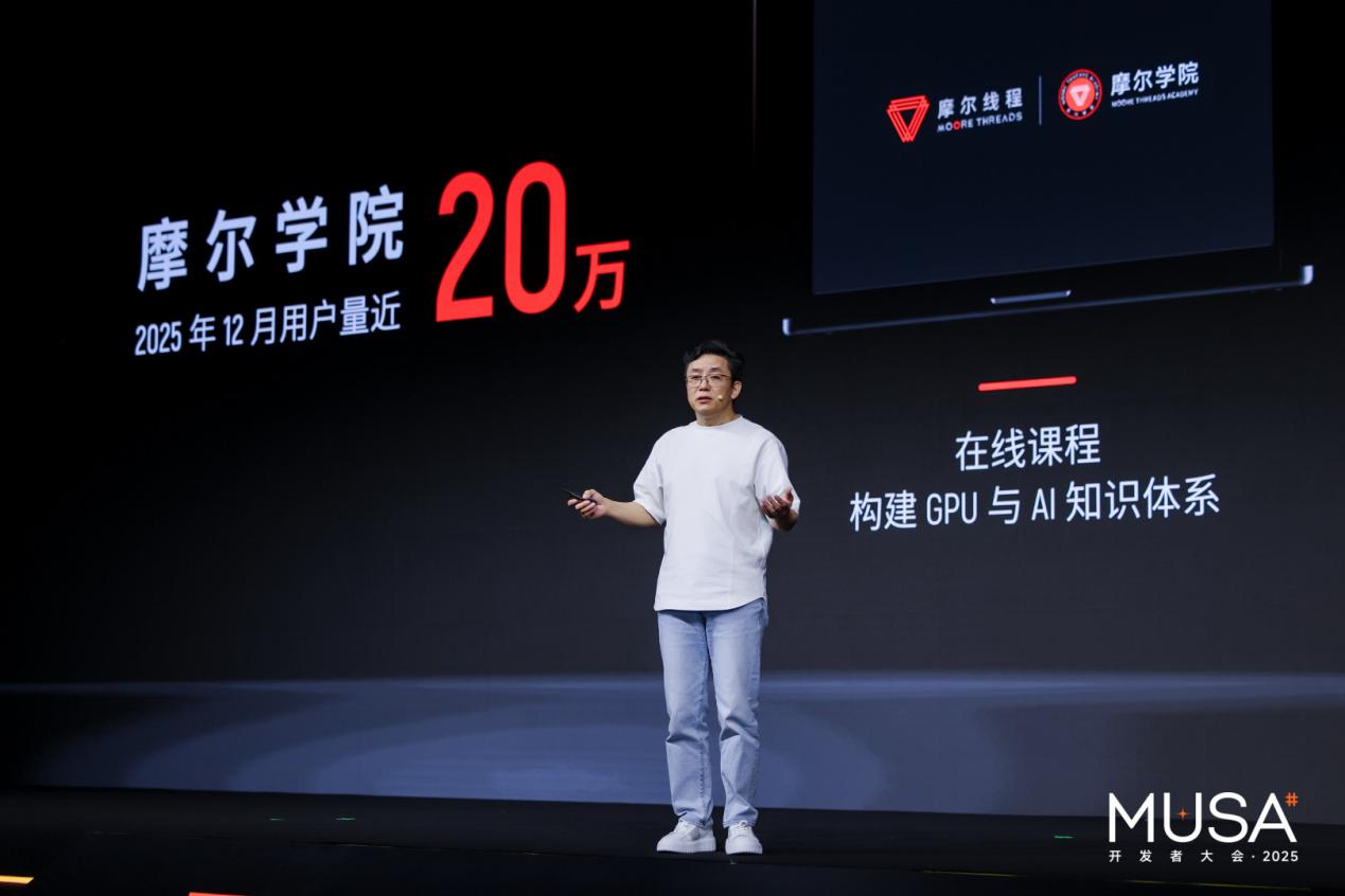 与此同时,摩尔线程也通过其“摩尔学院”,在高校与开发者社区中形成持续渗透。官方披露数据显示,其已覆盖20万量级的用户规模,并与全国200余所高校建立合作关系。